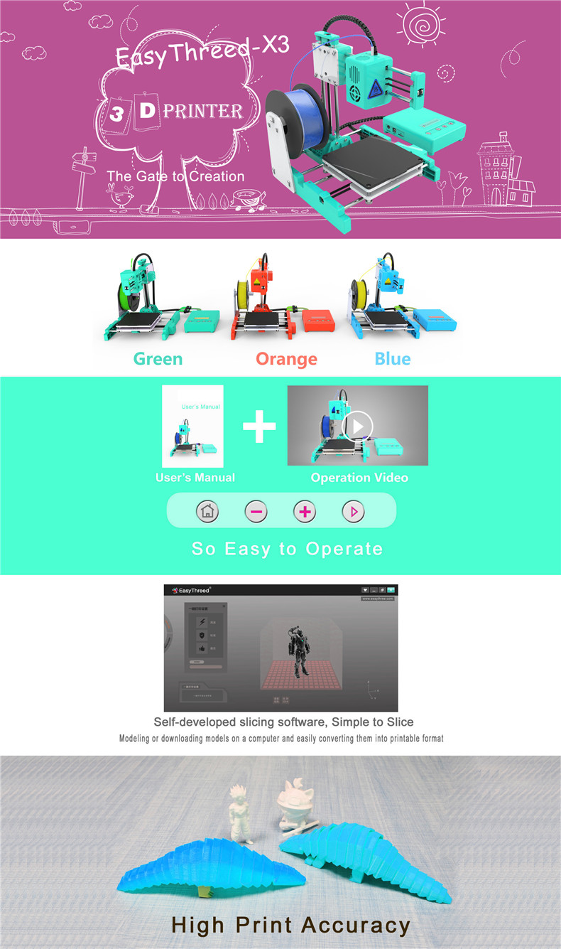 • La impresora 3D easythreed x3 es adecuada para niños y familias, por lo que sólo imprimo el filamento de Seguridad PLA.